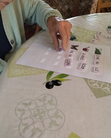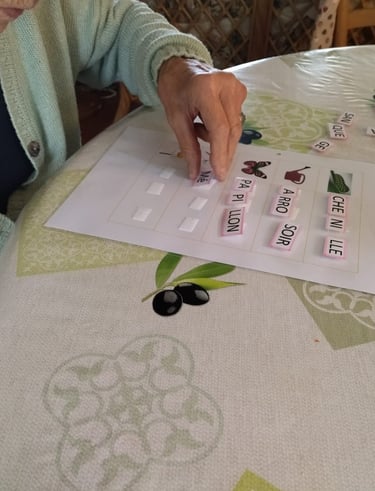 Activités cognitives (lecture, jeux de société…), sensorielles (5 sens), créatives, ateliers réminiscences…